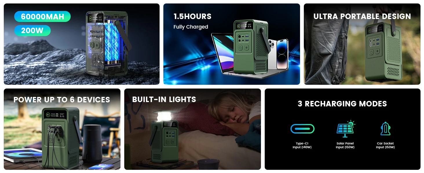 ✅ Massive 60,000mAh LiFePO4 Battery – long-lasting power with 3,000+ recharge cycles.