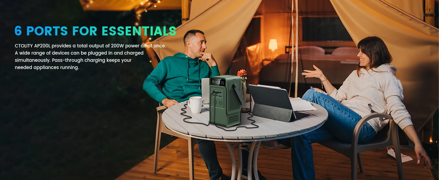 This 200W Solar Power Station delivers clean, silent, and portable energy for your home, office, or outdoor trips. Compact, powerful, and built for reliability.