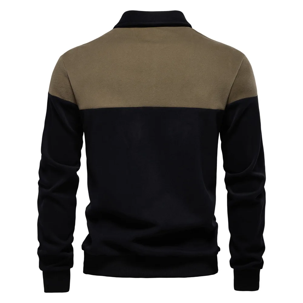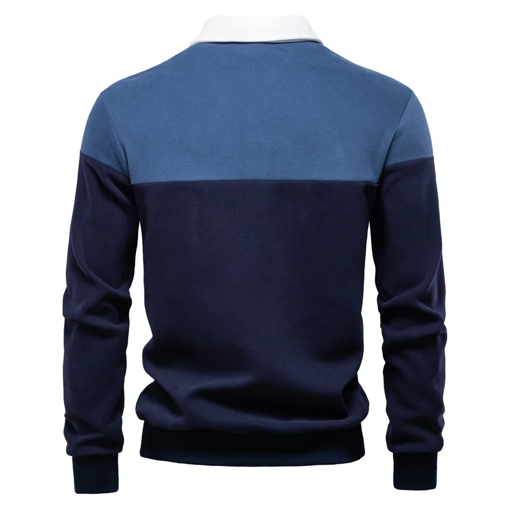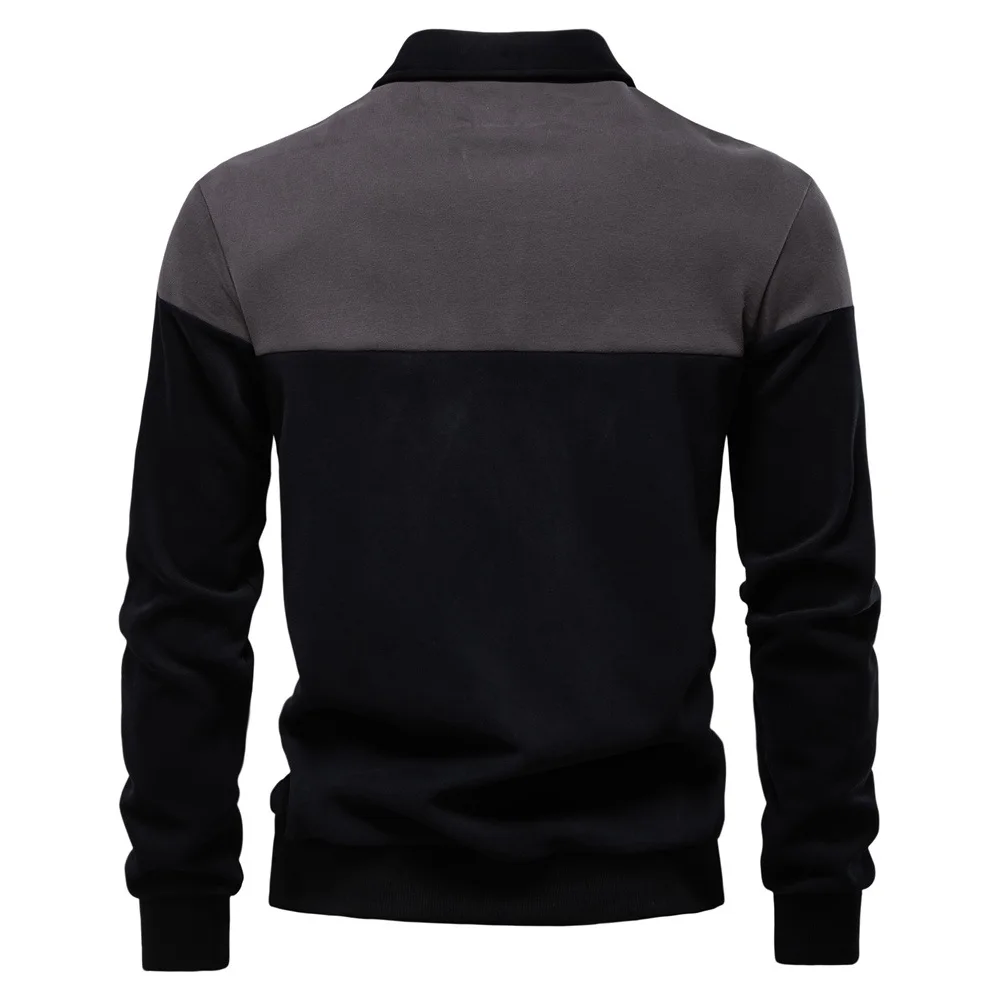 2025 New Arrival Long-Sleeve Polo-Collar Sweatshirt for Men, High-Quality Patchwork Casual Top